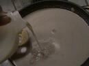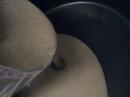 la farine au tamis, ajouter la moitie du lait au fur et a