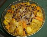 les légumes, les viandes et les raisins secs. Présenter