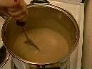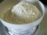 la farine au tamis, ajouter la moitie du lait au fur et a