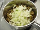 l'oignon, ajouter 2 feuilles, les amandes pulvérisées,